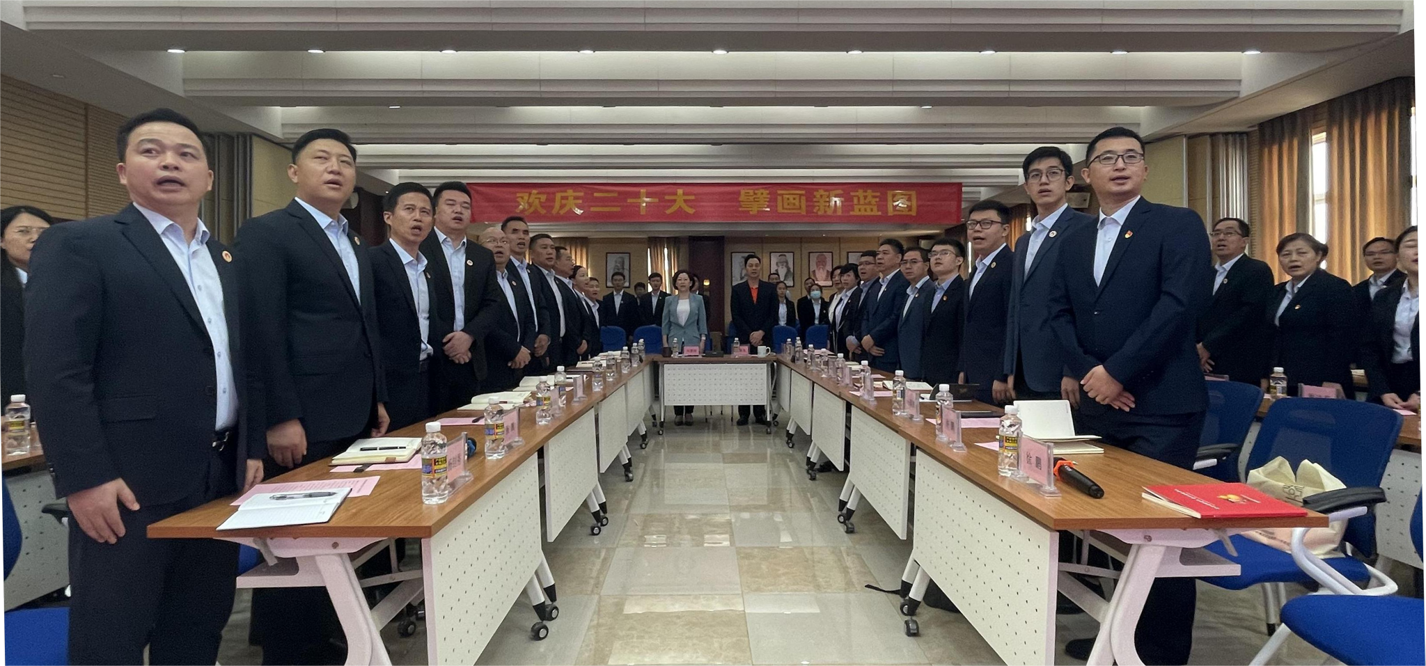 最后,刘景萍董事长要求公司上下对于党的二十大报告,要长期坚持学习、要与工作结合起来学习、要在学习和工作中不断总结,并提出相关要求:一是进一步提高政治站位,清醒认识到党的二十大精神是指导企业、引导企业高质量发展的行动纲领;二是坚持以党建为企业发展的长期抓手,坚持发扬斗争精神,敢于斗争、善于斗争,在工作中充分展现人生就是博人有担当、能打仗的优秀品质;三是领导干部带头学,在集团内掀起全员学习的热潮;四是在人才引进、项目认定、绩效考核等工作上与党的二十大精神保持一致。